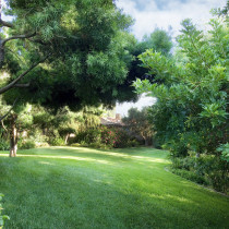 Die Grünanlage ist terrassenförmig angelegt. Das Besondere: Die Terrassen werden unter der Grasnarbe tropfbewässert.